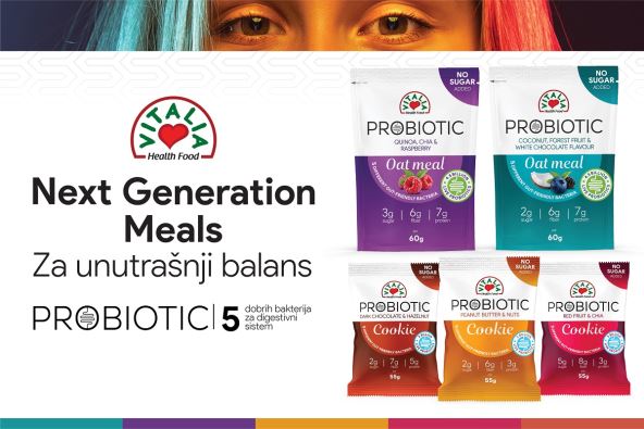 Nova generacija funkcionalnog doručka je Vitalia Probiotic ovsena kaša sa osvežavajućim miksom šumskog voća i listića kokosa, kao i kombinacijom kinoe, maline i čia semenki.