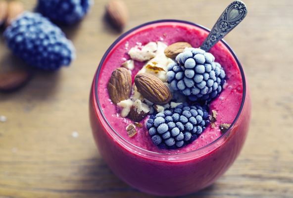 Sastojci: 2 šake spanaća, pola velike šoljice kupina, 1 šaka borovnica, pola krastavca (neoljuštenog), nekoliko listića mente, kašičica soka od limuna ili pomorandže.