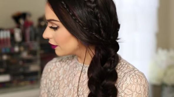 Prebacite uski pramen preko desne i omotajte ga oko leve polovine kose i čvrsto zategnite. Nakon toga spojite riblju kost i pletenicu u veliku pletenicu i efektna frizura je gotova!