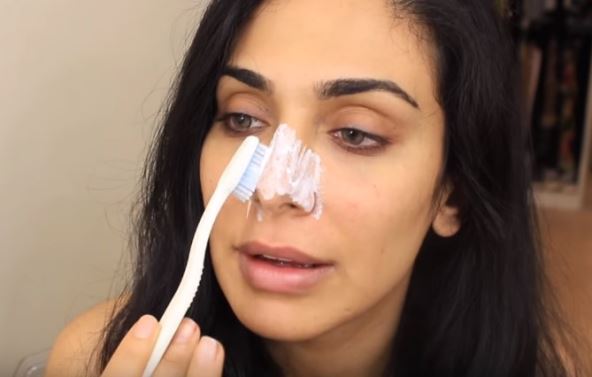 Nanesite smesu na nos i istrljajte sve četkicom. Imajte u vidu da za ovo treba da imate odvojenu četkicu (nikako onu kojom inače perete zube) i da ona treba da ima malo mekša vlakna.