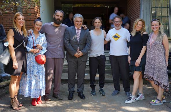 Ekipu na setu tokom jednog od poslednjih snimajućih dana u Beogradu posetili su idejni tvorac serije, Srđan Šaper, i direktor kompanije Telekom Srbija koja je ko-producent serije, Vladimir Lučić, koje na slici vidimo u društvu Sektora za PR Telekoma Srbija, producentskog tima Adrenalina, i glavnih likova u seriji Besa, glumaca Radivoja Bukvića i Arbena Bajraktaraja.