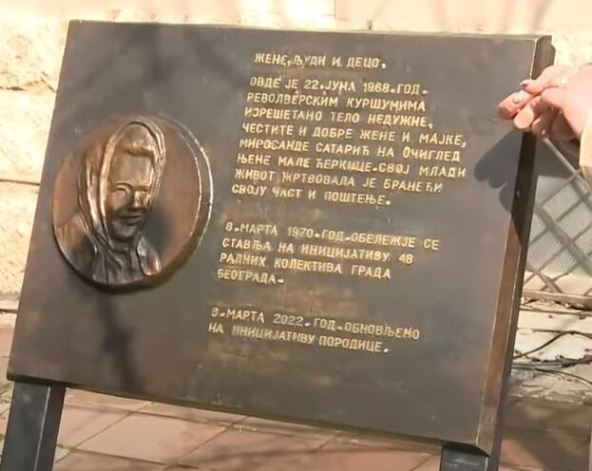 Simbolično, na Osmi mart, obnovljena je spomen ploča posvećena tragično nastradaloj Mirosandi Satarić na uglu Simine i Višnjićeve ulice. Povodom toga govorila je i njena unuka Ivana Jerković Andrejević.