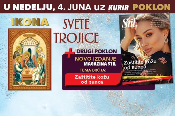 Dnevne novine Kurir u nedelju, 4. juna, svim čitaocima daruju dva poklona. Dobićete ikonu SVETE TROJICE plus dodatak porodični magazin STIL.