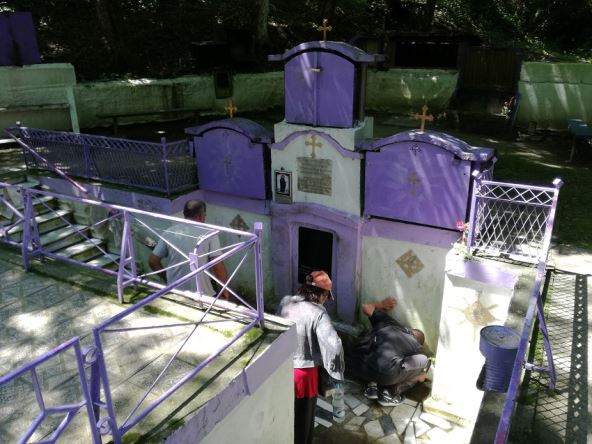 Da biste popili ili se umili vodom sa izvora, treba da siđete nekoliko stepenika do česme, gde se vernici mole svetiteljki, donose cveće i sipaju lekovitu vodu u flašice.