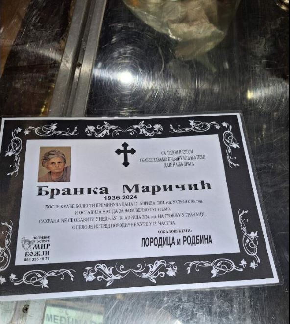 Naime, Sandra Petrović je uz fotografije umrlice, krsta, kao i pogrebnih kola parkiranih ispred bolnice, napisala da je u "Zdravstvenom centru - Studenica" u Kraljevu došlo do ozbiljnog propusta, kada su njenu baku, koja je živa, proglasili mrtvom.