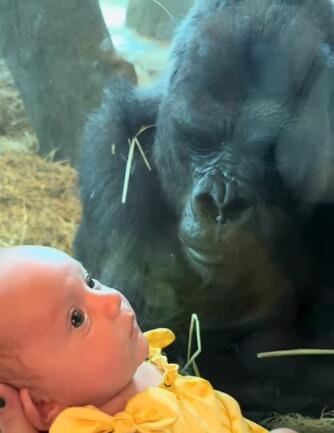 Mama s bebom stajala je ispred stakla zoološkog vrta, dok je gorila bila s druge strane.