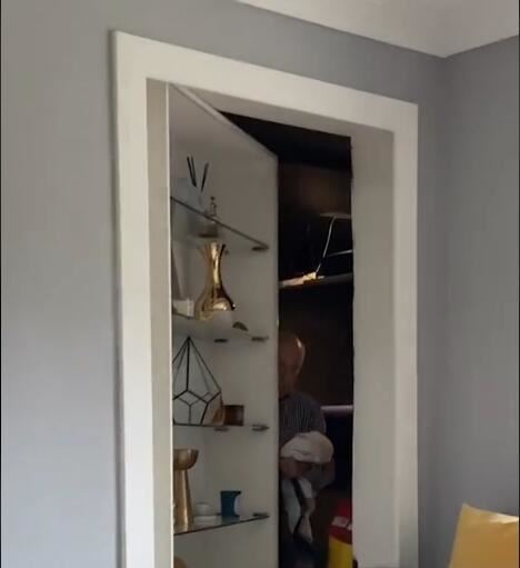 Čovek je snimio trenutak kada su se otvorila skrivena vrata iza police za knjige, a vlasnik kuće se pojavio držeći u rukama pantalone.