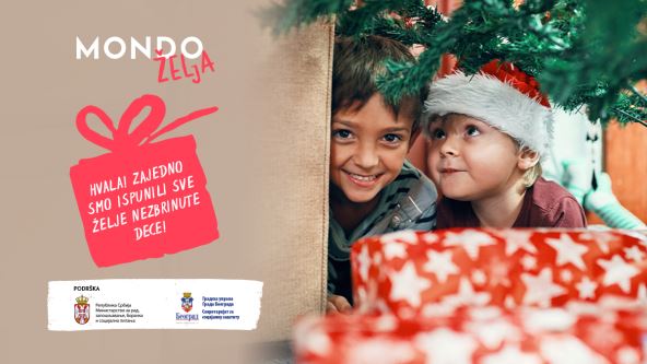 Kao i prethodnih godina, organizovana je jedinstvena humanitarna akcija MONDO ŽELJA, u kojoj čitaoci MONDO portala imaju priliku da se prijave i ulepšaju praznike mališanima bez roditeljskog staranja, koji žive u domovima socijalne zaštite širom Srbije.