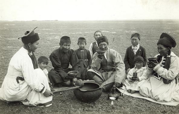 Kalmici su potomci mongolskih plemena, tačnije zapadnomongolskog naroda Ojrata, koji su živeli u oblasti oko Kaspijskog mora poznatoj kao Kalmikija (danas deo Rusije). Oni su jedini narod u Evropi koji tradicionalno praktikuje tibetanski budizam. Nakon Oktobarske revolucije 1917. godine i građanskog rata koji je usledio u Rusiji, mnogi Kalmici, koji su bili deo "bele" antikomunističke strane, emigrirali su kako bi izbegli represiju sovjetskog režima. Tokom 1920. deo tih izbeglica stigao je i u Kraljevinu SHS (kasnije Jugoslaviju), gde su bili prihvaćeni kao političke izbeglice. Beograd je bio jedno od mesta gde su se naselili. Nisu bili brojan narod, ali su ostavili upečatljiv trag.