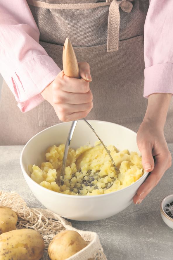 U ispasirani krompir skuvan u slanoj vodi stavite malo toplog mleka, puter ili margarin, sitno seckani beli luk i kašiku peršuna. Mleko i maslac pre stavljanja u krompir treba da budu sobne temperature.