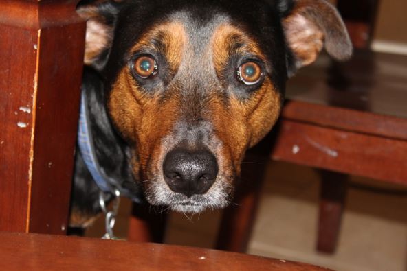 Nikad neću zaboraviti kako se naš pas ponašao kad smo prvi put s njim ušli u kuću. Došao je do stepenica koje vode na sprat u dnevni boravak i nije želeo da dođe gore. Drhtao je i sakrio se pod sto u kuhinju. Celu noć je proveo tamo. Sve nam je to bilo jako čudno jer nikada nije bio previše strašljiv. Drugo večee je stao ispred stepenica, neko vreme gledao u nešto gore, pa se sakrio pod sto. Ponovo nije želio k nama u dnevnu sobu.