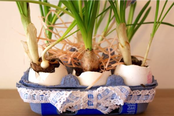 Spremite zemlju pa u svaku ljusku pažljivo stavite po malo. Zatim pažljivo stavite sadnicu pazeći da ne oštetite koren ili ljusku. Preko dodajte još zemlje pa stavite tako zasađen cvet u kutiju.