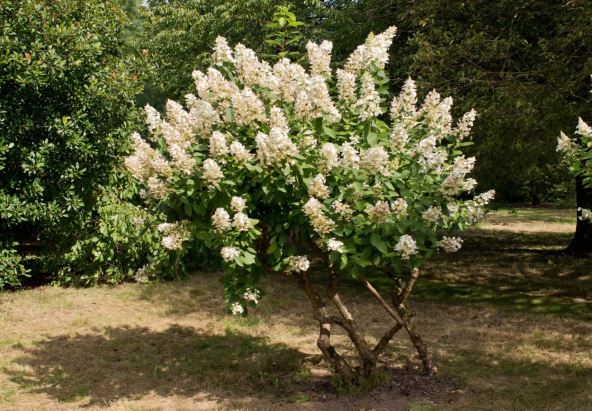 Kompaktna žbunasta hortenzija (Paniculata limelight) na štapu, ima uspravne grane i može porasti i do dva metra. Cvetovi su okrugli, beli, bujni i krupni, kao kod standardne hortenzije, na čvrstim stabljikama, a u kasnijem cvatu dobijaju svetlo-roze nijansu.