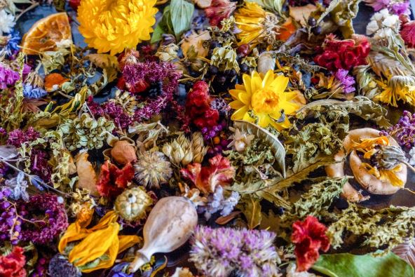 Uzgajivači cveća otkrivaju da kad se osuše najlepše izgledaju Xerochrysum bracteatum, kod nas poznat kao slamnati cvet, anafalis (mali beli cvetovi koje zovemo 'večno biserno cveće'), nigela (mačkov brk, ljubav u magli), ali i bezbroj trava.