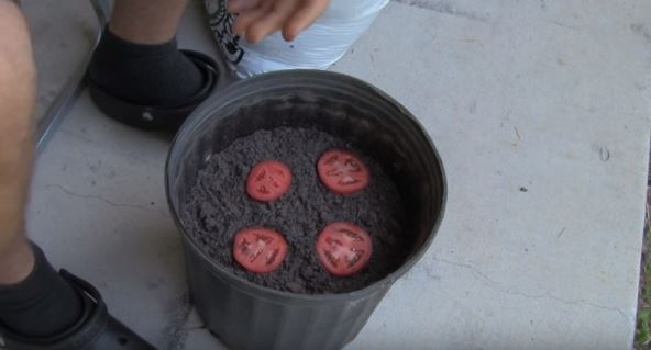 Čovek u videu pokazaće vam najjednostavniji način za uzgajanje paradajza. Sve što vam je potrebno jeste saksija, zemlja i kolutovi isečenog paradajza sa semenkama.