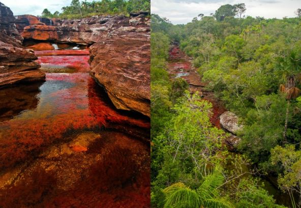 Nazvana je ovako zbog svojih neverovatnih nijansi žute, zelene, plave i crvene boje. Ovaj redak fenomen, koji se javlja samo od juna do decembra, nastaje zahvaljujući endemskoj vodenoj biljci Macarenia clavigera, koja pokriva korito reke.