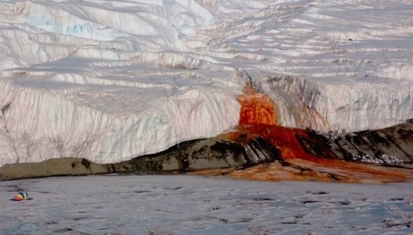 Australijski geolog Grifit Tejlor je 1911. godine istraživao antarktički glečer dug desetinama kilometara, koji danas nosi njegovo ime – Tejlorov glečer, a ceo ovaj deo Antarktika Tejlorova dolina, piše National Geographic.rs. Lutajući ledenom površinom, naišao je na nesvakidašnji prizor: crvenu vodu koja se slivala niz led!