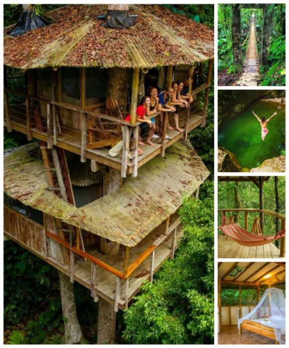 Naselje-hotel se sastoji od niza kućica na drveću. Sa balkona se pruža pogleda na brda, planine i prašumu.