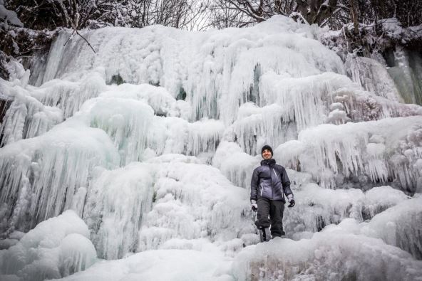 Svih 15 metara crvenih stena preko kojih voda pada zaleđeno je, zajedno sa kapljicama i mlazevima koji su se pretvorili u ledenice, čineći prizor kao iz najlepše bajke.