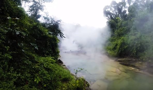 Okružena je obojenim kamenjem i bogatom vegetacijom visokom i do 18 metara, a lokalno stanovništvo veruje da je reč o svetoj reci s lekovitim moćima. Štaviše, o uzavreloj reci u Južnoj Americi pričaju se brojne legende.
