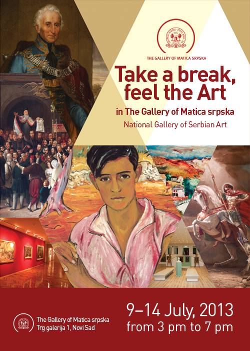 Galerija Matice srpske (GMS) je pripremila program Take a break – feel the Art in The Gallery of Matica srpska, u želji da tokom trajanja predstojećeg Exit-a promoviše srpsku nacionalnu umetnost i kulturnu baštinu i tako je približi stranim turistima, saopštila je danas GMS.