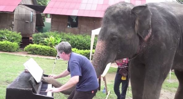 Slonovi sa snimka uživaju u muzici i nisu se libili da to i pokažu. Jedan od njih, Piter, je sve vreme svirao surlom klavir zajedno sa muzičarem, a u pauzama je klimao glavom u ritmu muzike