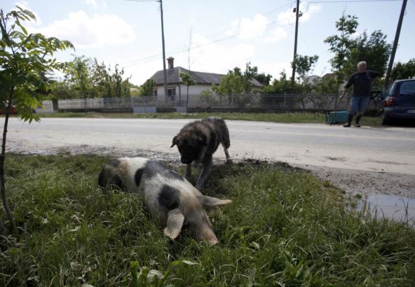 Da zna da govori, reči ovog psa bi bile "u pomoć". Naime, pas pognute glave stoji i posmatra svog mrtvog drugara - prase nastradalo u poplavnom talasu u Obrenovcu.
