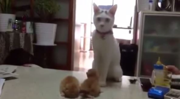 Barem tako misli mačak sa snimka koji svoje mačiće hoće da nauči ovu važnu lekciju.