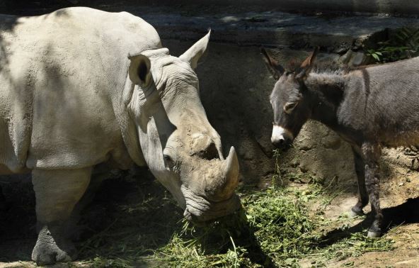 Ženka nosoroga u zoološkom vrtu u Tbilisiju je upala u depresiju nakon uginuća svog partnera i postala je agresivna prema čuvarima i veterinarima koji se brinu o njoj. Oni su bezuspešno pokušali da joj nađu družbenice među zebrama i kozama, ali pun pogodak je bio susret sa magarcima