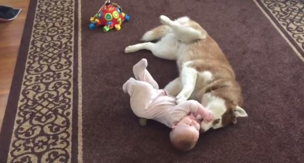 Pogledajte i sami kako sibirski haski zabavlja ovo malo biće. Na prvi pogled beba ga se plaši, ali on čini sve kako je ne bi povredio. Štaviše, udovoljava svim njenim zahtevima, sigurno će vas rastopiti! Ovo su definitivno najbolji prijatelji do kraja života.
