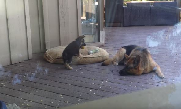 Naime, na ovom snimku se vidi kako štene vučjaka uporno pokušava da izbegne odlazak na spavanje jurcanjem za lopticom. Međutim, njegova mama je primetila da je izašao iz svog "kreveca", pa ga je vratila na mesto gurkajući ga, a šapom ga je postavila u ležeći položaj ne bi li mališan konačno zaspao.