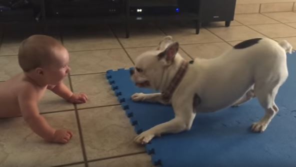 Francuski buldog Rupert ne samo da zna kako treba sa bebom, već daje sve od sebe samo da nasmeje svog omiljenog drugara.