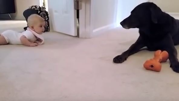 Malena devojčica je odlučila da će tog dana uspešno prvi put da puzi sama. Počela je polako da puzi prema svom najboljem krznenom prijatelju koji ju je nestrpljivo čekao u blizini. Možemo da vidimo da je reč o jednom starijem psu, jer je njegova njuška osedela.