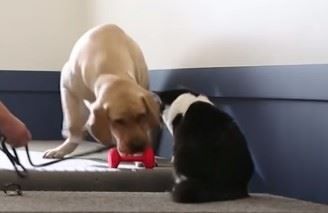 Zapravo, njen posao je da testira toleranciju pasa na mačke. Ona pije iz njegovih činija i gnjavi ih, a oni uče kako da budu strpljivi.