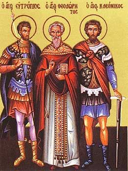 Sva trojica behu mladići. Evtropije i Kleonik su bili braća rođena, a Vasilisk srodnik svetom Teodoru. Međutim, sva trojica bejahu kao braća rođena. - Kao što je Sveta Trojica nedeljiva, tako smo i mi po veri nedeljivi i po ljubavi nerazlučni - rekli su pred namesnikom.