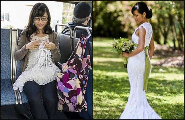Ali ova inspirativna mlada žena je uradila upravo to! Idući na posao, dok se vozila autobusom, ova žena je svakog dana heklala svoju venčanicu.