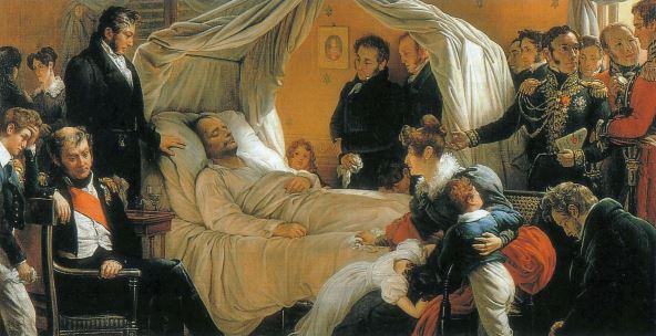 Fascinacija koju je izazivala Napoleonova smrt navela je francusko-nemačkog slikara Šarla de Steubena da ovaj događaj zauvek otrgne od zaborava. Steubenova slika prikazuje poslednje trenutke Napoleonovog života prenoseći atmosferu dubokog divljenja i tuge u sobi u kojoj je umro čuveni vojskovođa, čije je legendarno životno delo započelo tokom Francuske revolucije.