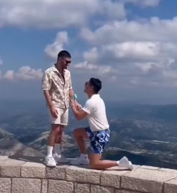 Snimak veridbe, na kojem se vidi kako je jedan mladić kleči na kolenu dok prosi svog partnera nakon čega se ljube, objavila je ulcinjska televizija TV Teuta na svom Instagram profilu.