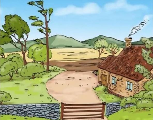 Slika prikazuje kuću s dva prozora, dimnjakom, ogradom, drvećem i brežuljcima u pozadini. Iako na prvi pogled izgleda sasvim jednostavno, nešto na slici ne odgovara stvarnosti. Možete li otkriti što je to? Iako zagonetka može delovati izazovno, ključno je pomno posmatrati svaki deo ovog prizora. Skenirajte svaki centimetar slike jer imate samo 23 sekunde da pronađete rešenje.
