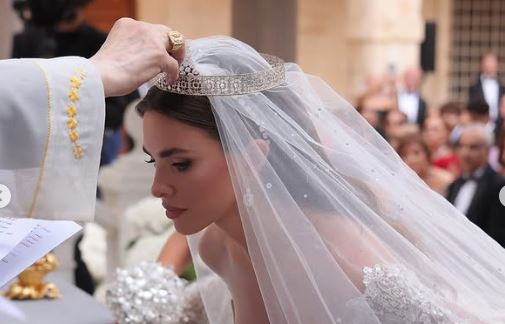 Glavna ceremonija održana je 18. jula u katoličkoj crkvi u Bkerkeu, duhovnom sedištu maronitske crkve. Mlada je ušla u crkvu pod ruku sa ocem, u raskošnoj venčanici koju je Eli Sab dizajnirao lično – pravo remek-delo visoke mode.