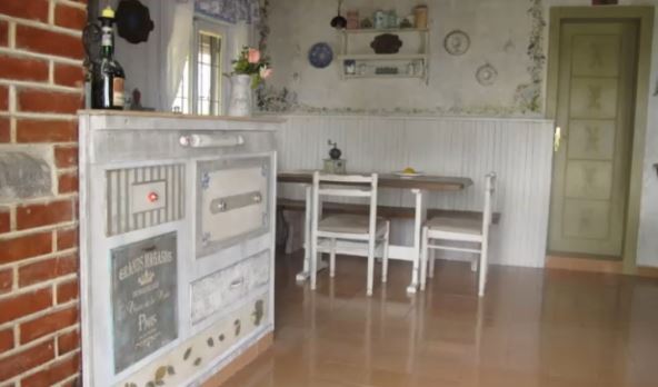 Šank od drvene lamperije zamenjen je šper-pločom, na kojoj je Snežana napravila neobičan dizajn „lažnih fioka“, svaka drugačijeg izgleda. Ugradila je i kolekciju keramičkih ručki koje godinama strastveno skuplja tokom putovanja.
