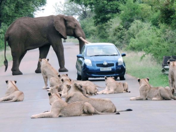 Naimek, posetilac rezertvara našao se u nesvakidašnjoj situaciji - njegov auto našao se između čopora lavova slona!