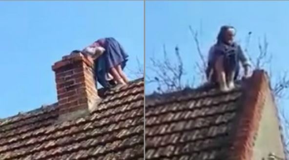 Jedna devedesetogodišnja bakica iz Rusije snimljena je kako se penje na krov, pa proverava stanje odžaka. Kada je utvrdila da je sve kako treba, sišla je spretno kao mačka.