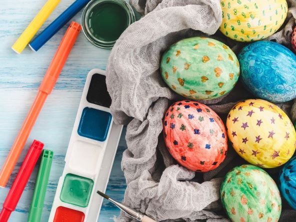 Tempere su idealne za detaljnije iscrtavanje po jajima jer ostavljaju jasan trag i lako se koriste. Svako zna da nacrta crticu četkicom, tako da će ovaj projekat svi ćlanovi porodice moći da sprovedu u delo. Koristite najraznovrsnije boje kako bi efekat bio što bolji i kako bi crtice podsećale na šarene mrvice koje se koriste za ukrašavanje slatkiša. Sve ovo možete da izvedete i sa flomasterima.