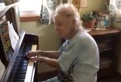 I ne bi to bilo toliko čudno, da ova baka nema 104 godine! Iako je u poznoj starosti, njoj ne manjka umeća i vidi se koliko i dalje uživa u sviranju.