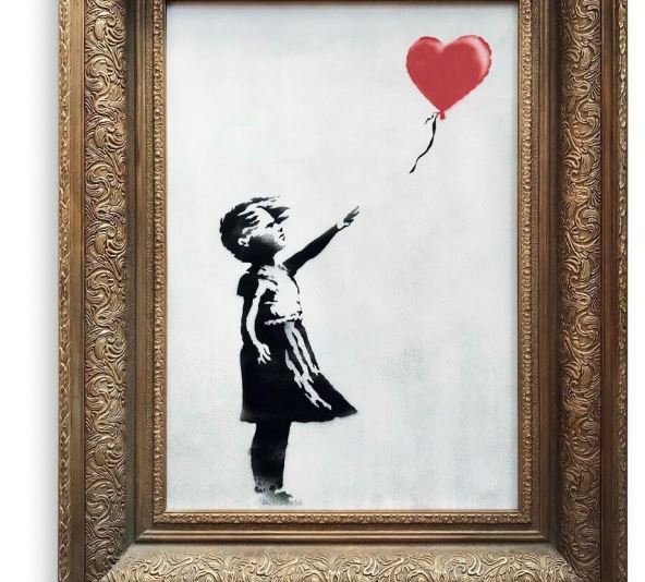 Kopija Benksijevog čuvenog muralaDevojka sa balonom prodata je u aukcijskoj kućiSotbi, ali čim je pao čekić koji označava da je slika prodata, umetničko delo je krenulo da se samouništava pomoću sakrivene mašine, što je izazvalo vidan šok kupca i svih prisutnih.