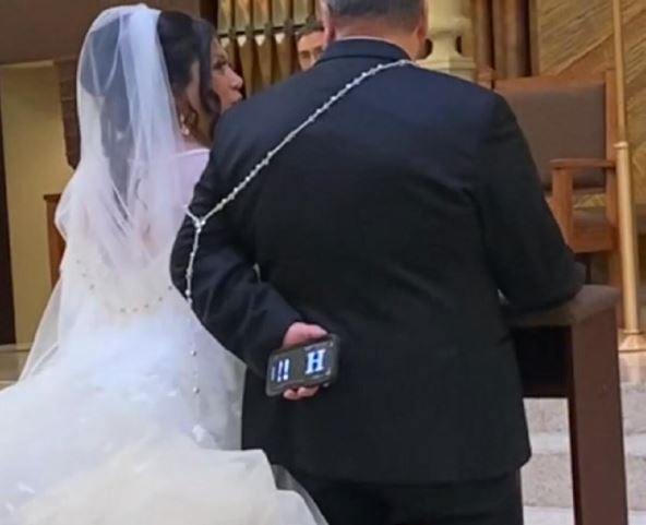 Tokom same ceremonije, mladoženja je držao mobilni telefon iza svojih leđa na kojem je prikazivana duhovita poruka, a ovakav potez izazvao je različite reakcije među prisutnima i na samom TikToku.