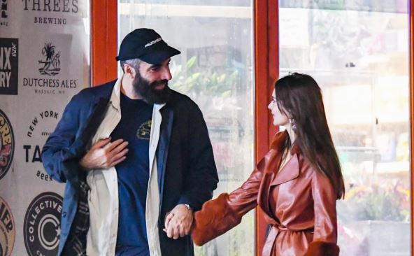 Paparaci su uhvatili par tokom večernje šetnje. Emili je bila odevena u dugački braon kožni mantil sa upadljivim krznenim rukavima, ispod kojeg je nosila crni top i široke, lepršave pantalone.