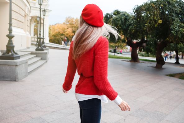 Iskoristite toplo vreme i crnu suknju iskombinujte sa crvenim džemperom.