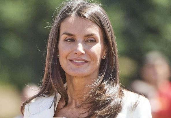 Beli sako i kulote pantalone u istoj boji sa širokim nogavicama, španska kraljica iskombinovala je uz smeđu bluzu sa tufnastim dezeno , da bi celokupno izdanje začinila modelom bezvremenskih espadrila s punom petom.